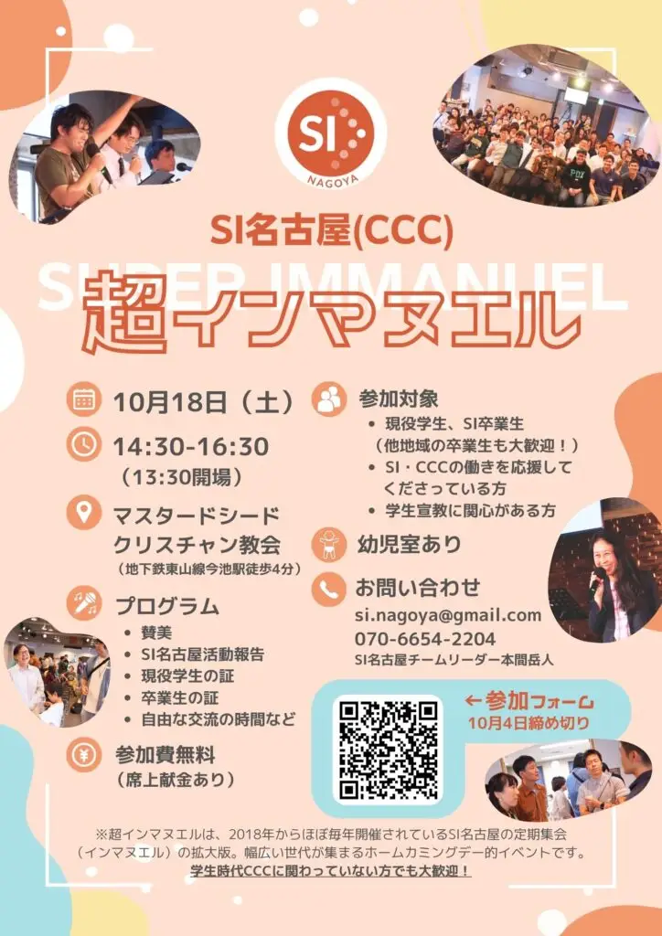 Student Impact(SI)名古屋はアットホームなプロテスタントのクリスチャンインカレサークルです。